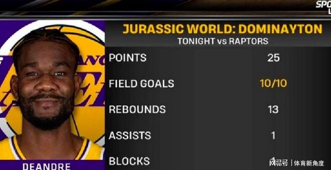 在近期的一场比赛中,湖人队回到主场,以110 - 93的比分干净利落地战胜了东部排名第四的猛龙队。让我们先来瞧瞧双方的数据表现。猛龙队这边,球员们虽奋力拼搏,但最终未能扭转局势;而湖人队这边,有一位球员的表现简直可以用惊艳来形容,他便是艾顿——哦不,大家习惯亲切地称他为“艾宝”。在这场比赛中,艾宝的状态神勇至极,投篮10次出手全部命中,以100%的完美命中率狂揽25分,同时还摘下13个篮板,轻松拿下两双数据。